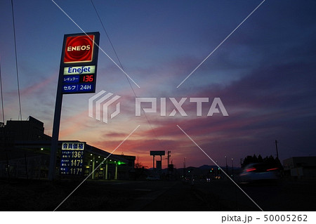 24時間営業のガソリンスタンド 夜明けのガソリンスタンド