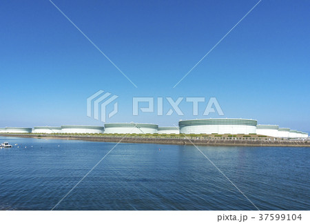 石油備蓄タンク が立ち並ぶ 東京湾 の 沿岸 【 エネルギー の イメージ 】