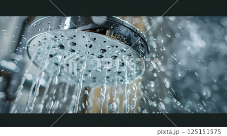 Chrome plated shower head, shower treatments. The girl takes a shower. Shower accessories