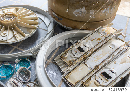 Parts of the washing machine are filled with mold,algae or rust stains and dirt,preparing to clean and clear the washer drum,check,repair equipment or maintenance of household electrical appliances
