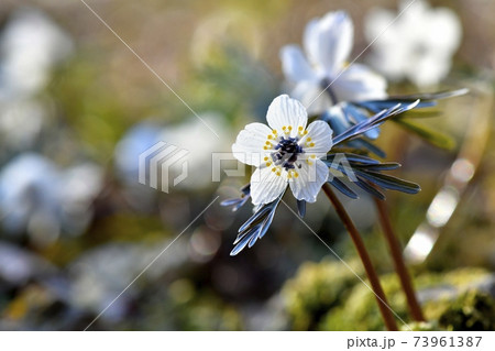 秩父両神地区群生地に咲くセツブンソウの花