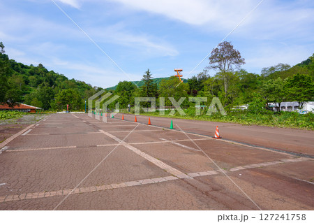 夕張の石炭の歴史村の広い駐車場