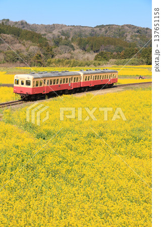 菜の花畑を走る小湊鉄道 石神菜の花畑