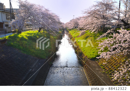 埼玉県深谷市唐沢川の満開の桜堤