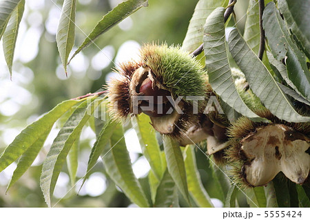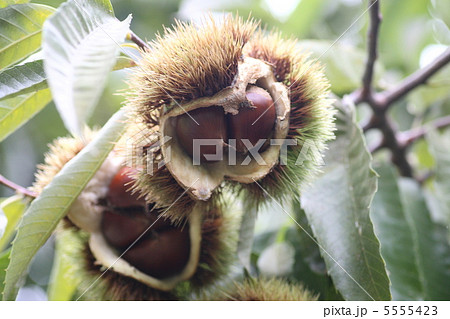 秋の味覚 栗 くり クリ 生栗 茶色の背景