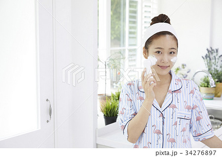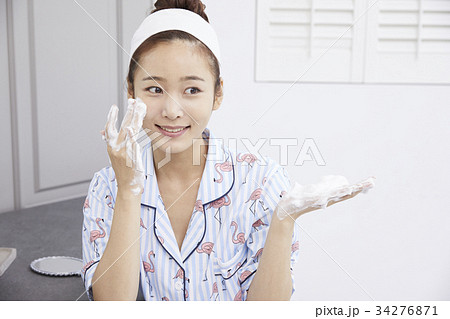 ビューティー 洗顔をする女性