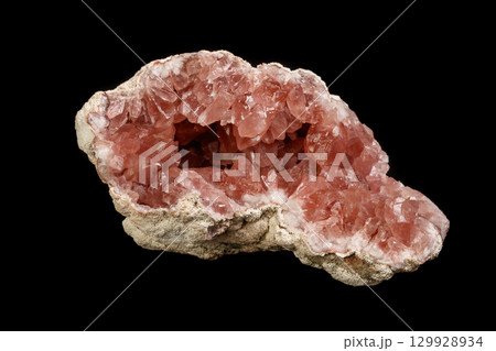 Macro mineral stone Pink Amethyst on a black background