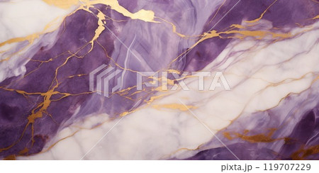 抽象横長背景。白と紫と金色のマーブル模様の壁の表面。AI生成画像