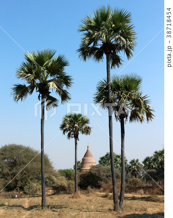 ヤシの木とパゴダ。ミャンマー・バガン。2018/2/19