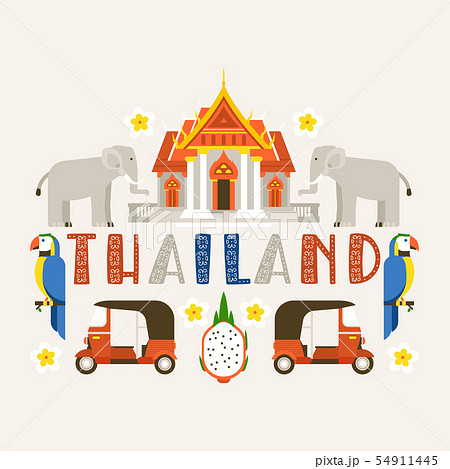 Thailand banner. Traditions, culture of country. Ancient memorials, buildings, nature and animals