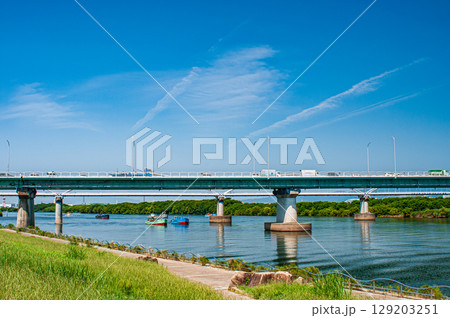 夏の淀川風景 枚方大橋の景観 大阪府枚方市