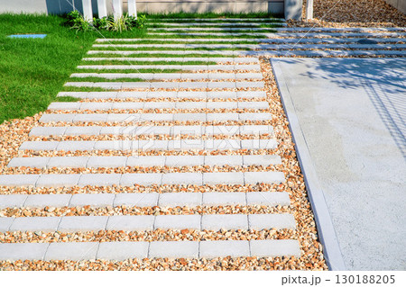 一軒家のエクステリアにある敷き石の粒