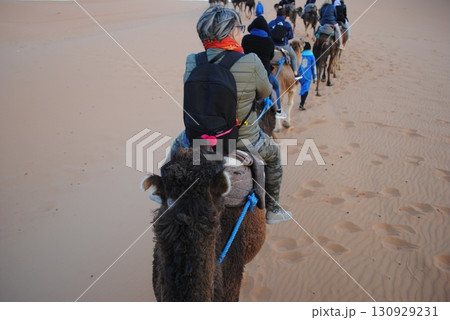 サハラ砂漠 モロッコ旅 ラクダ 夕暮れ 雲ひとつない空