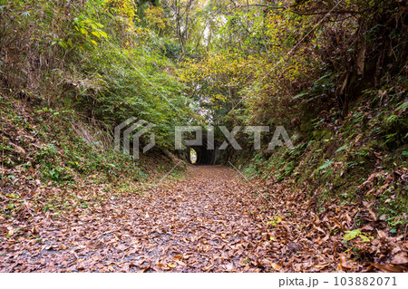 秋の季節に山道・林道に映える八角トンネル風景(観光スポット 八角トンネル 下益城郡美里町 )