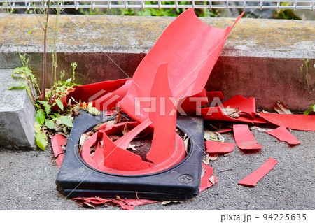 破壊されたロードコーンの画像素材(写真・イラスト) 1ページ目
