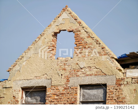 Ruined Building Scene. Derelict Architectural Features Revealing Passage Of Time And Urban Decay Signs