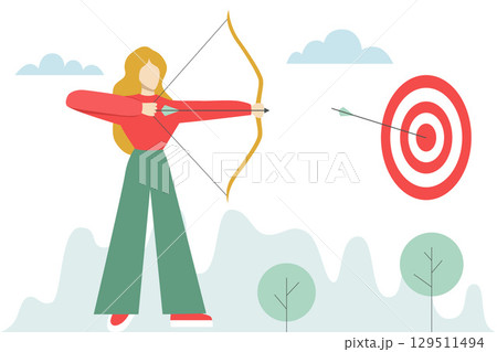 Archer Hitting Bullseye with Bow and Arrow Illustration