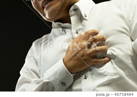 突然の発作に胸を押さえて苦しむ中年男性