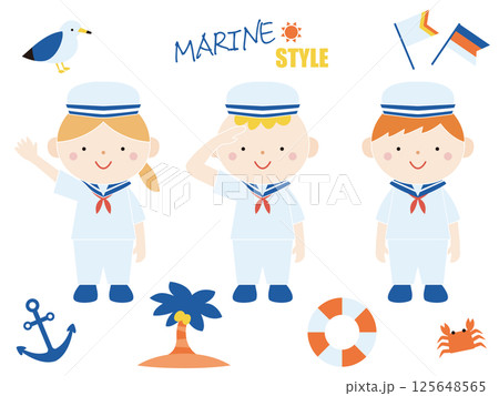 かわいいマリンモチーフのイラストセット〈白ふちあり〉