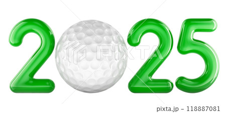 Golf 2025 with golf ball, concept. 3D rendering