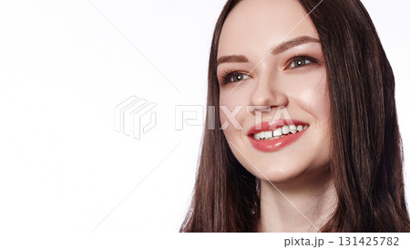 Beautiful Smiling Woman with Clean Skin, Natural Make-Up. Joyfull and Happiness. Emotional Female Face. Health, Wellness
