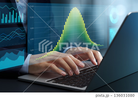 正規分布を用いたデータ分析。統計モデリングと確率分布。ノートパソコンを使ってビジネスデータを分析する