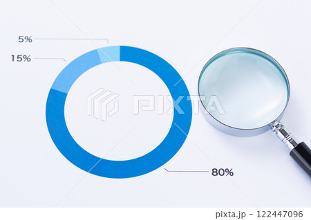 円グラフを虫眼鏡で拡大するベクターイラスト
