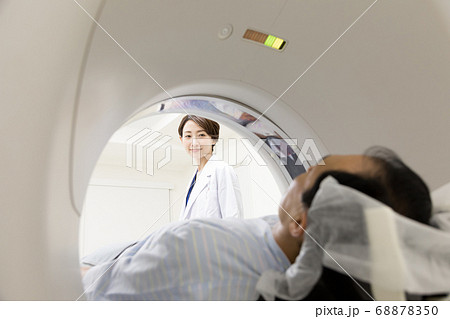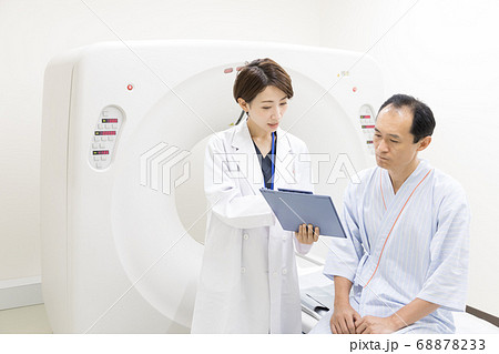 CT検査を受ける中年男性