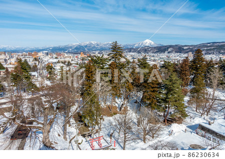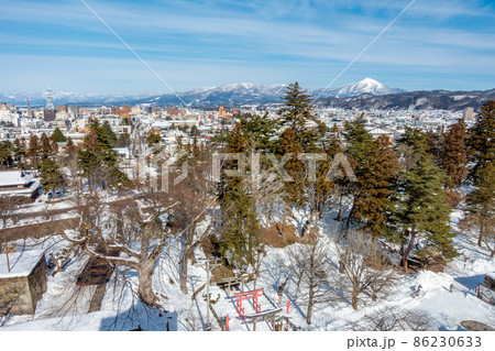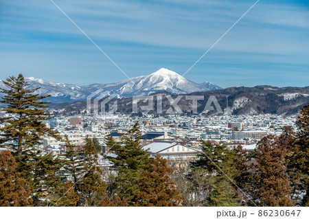鶴ヶ城からの眺望 北側 冬の磐梯山 中国の神 北の星宿の神格化 北方を守護する 玄武
