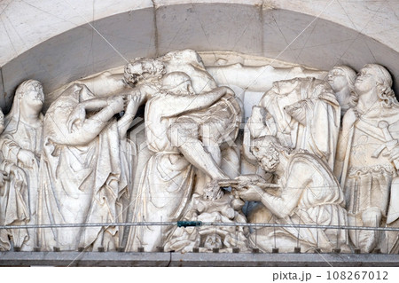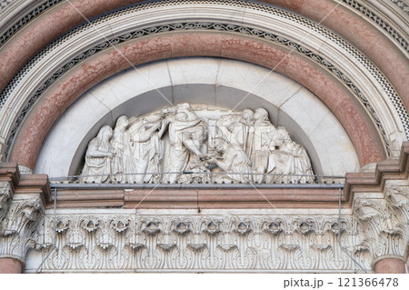 Deposition from the Cross, lunette over the portal of Cathedral of St Martin in Lucca, Italy