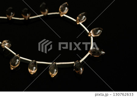 黒背景に映えるペリドットとパールのブリオレットカットルース