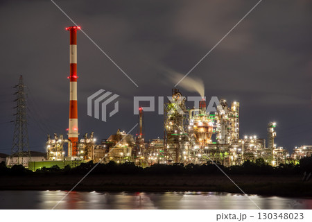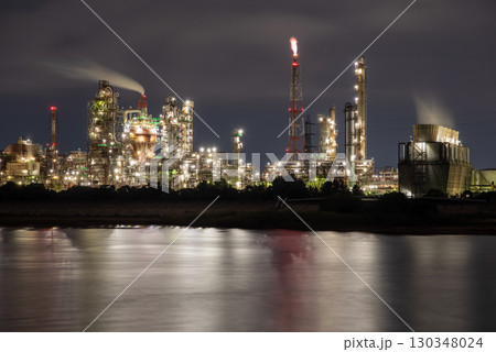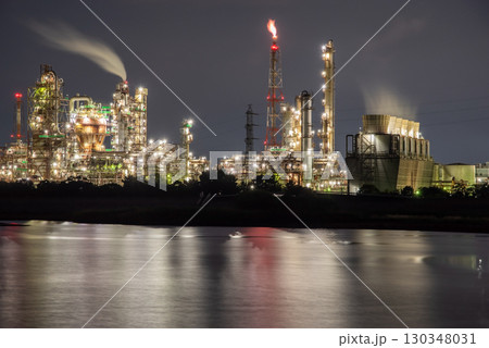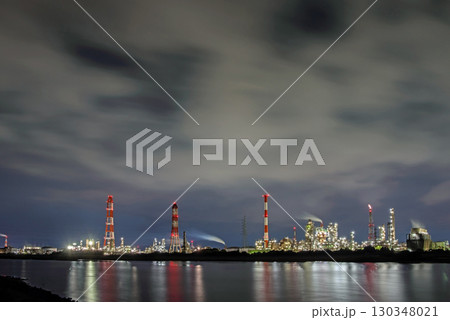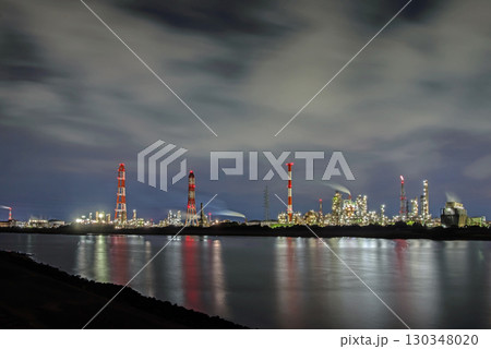 磯津・鈴鹿川河口周辺 美しい工場夜景の水面反射
