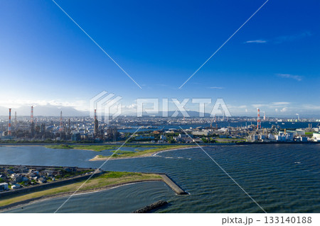 磯津海岸から見た四日市コンビナート(ドローンによる空撮)