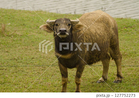 Water buffalo in threatening attitude.