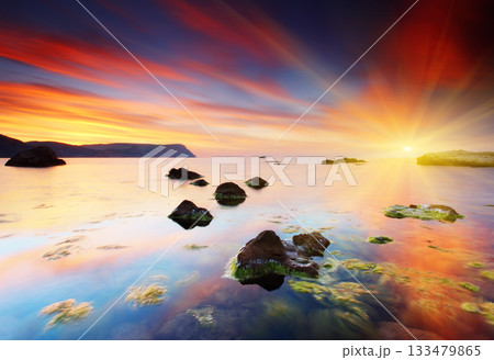 Sea stones at sunset