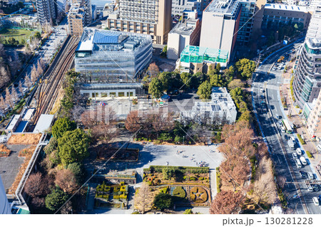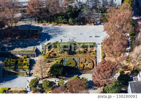 文京シビックセンター展望ラウンジから見下ろす文京区立礫川公園 東京都文京区