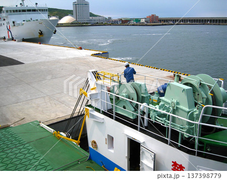 北海道礼文島 香深港を出港するフェリー / Rebun Island, Japan