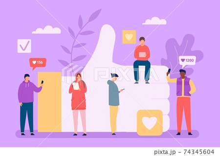 People addicted to like. Group of characters checking social media in phones and gadgets. Addiction to internet and feedback vector concept