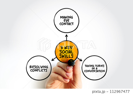 3 Key Social Skills and How to Encourage Them mind map text concept for presentations and reports