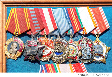Different vintage orders of former Soviet Union. Various Soviet military and civil awards
