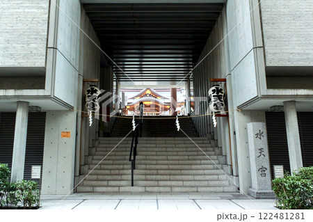 【東京】冬の日本橋七福神巡り 水天宮の本殿へ続く階段と提灯(弁財天)