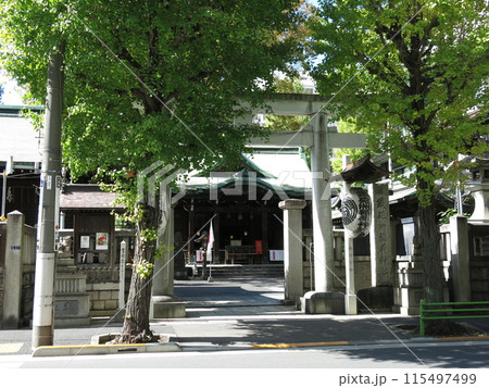 江ノ電が鳥居前を走る鎌倉市の御霊神社(権五郎神社)