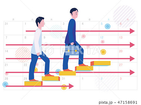 派遣社員期間のステップアップとスケジュール-フラットデザインコンセプトイラスト