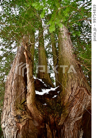 福島県会津若松市のパワースポット 雪残る伊佐須美神社の御神木 天海大僧正手植桧