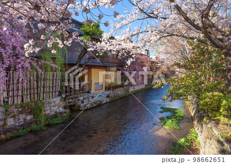 古都の春の京都市東山祇園白川の桜を撮影