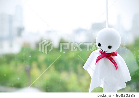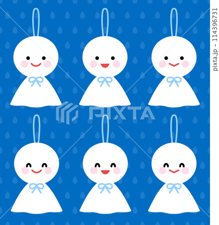 デフォルメ、てるてる坊主のイラスト、梅雨、雨、素材、アイコン、背景なし
