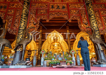 ベトナムハノイ ニンビンにある東洋一の敷地面積を誇る世界遺産のバイディン寺でお参りする人