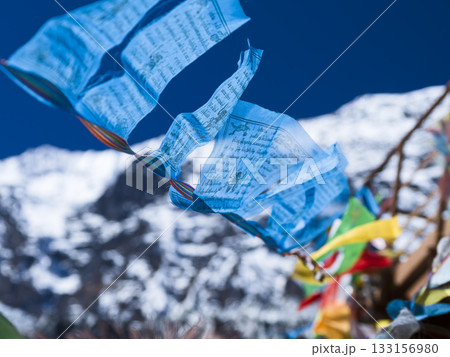中国雲南省・梅里雪山に靡くタルチョ / Meili Snow Mountains, China