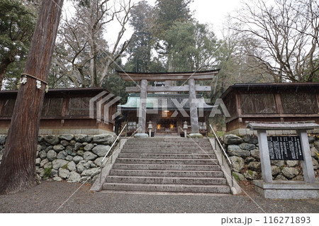 岡山県奈義町にある「滝神社」本社の里宮である「遙拝殿」:鳥居