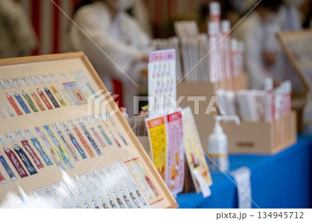 西新井大師 おみくじを手に持つ お守り授与所の風景